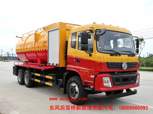 底盤說明:東風(fēng)153G豪華駕駛室或東風(fēng)D913仿天錦駕駛室,4350+1300mm軸距,玉柴240馬力發(fā)動(dòng)機(jī),小八檔變速箱,5t/10t雙后橋,10.00-20輪胎,帶ABS,下防護(hù)。吸污罐體有效容積:13.6立方米,水罐罐體有效容積:10.9立方米。外形長/軸距對應(yīng)關(guān)系為(mm):9450/4350+1300,9850/4750+1300。 清洗部分主要配備:配備大流量的高壓清洗泵。國產(chǎn)配套件液壓 驅(qū)動(dòng)系統(tǒng),高壓軟管,液壓驅(qū)動(dòng)卷盤懸掛在后開啟門上,碳鋼噴頭,夾心取力器,罐體形狀為圓罐,機(jī)械操作。主要用于清洗城市下水道、管道的沉積物、死角泥溝的疏通。也可用于清洗工業(yè)排液管道、壁面等,緊急時(shí)可用于救火。 吸污部分主要配備:加裝副發(fā)動(dòng)機(jī)組配備山東水循環(huán)真空泵。罐體后封頭球閥控制自流口1個(gè),1個(gè)視污窗。一次性成型舉升式罐體,罐體兩則油缸,后蓋液壓開啟,機(jī)械鎖緊,帶液位報(bào)警。主要用于下水道、雨水井、檢查井、化糞池及各種溝渠內(nèi)的污泥、糞便或石油化工廠污水池淤積物的抽吸、裝運(yùn)和排卸。 P.S.水罐和吸污罐為兩個(gè)獨(dú)立罐體,清洗功能時(shí)用水罐,吸污功能時(shí)用吸污罐,清洗吸污兩種功能不同時(shí)使用?杉友b灑水裝置,選裝低水位報(bào)警裝置。 |
