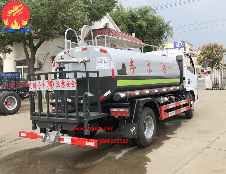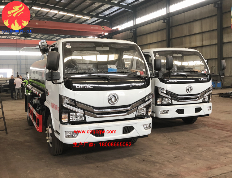 該批綠化噴灑車采用標(biāo)準(zhǔn)國(guó)六底盤,3308mm軸距,柴油115馬力國(guó)六發(fā)動(dòng)機(jī),5檔箱,鋼絲胎,帶ABS。罐體實(shí)際容積約5立方米。