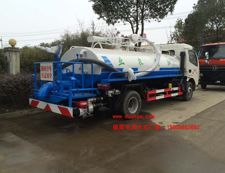 底盤說明:新款單排可前翻白色駕駛室,東風(fēng)5檔變速箱,汽剎制動,帶原裝方向助力,中冷增壓,7.50R16原廠鋼絲胎.朝柴120馬力柴油發(fā)動機,192車架,軸距3800mm,2.5噸前橋,4.5噸后橋。罐體有效容積:5.5立方。 專用部分:標配取力器、隨州真空吸糞泵(8mm以上建議加裝雙聯(lián)真空泵)、油水分離器、四通閥、洗手裝置、罐體后封頭閘閥控制自流口1個、糞罐、帶視糞窗1個、1根6米吸糞管、普通油漆。 吸糞管 : 可360度旋轉(zhuǎn),抽滿糞罐時間:≤5min,吸程:≥6m。自吸自排,壽命長,工作速度快,容量大,運輸方便,適用于收集運輸糞便、泥漿、原油等液體物質(zhì)。P.S. 可根據(jù)客戶要求加裝灑水功能,水罐糞罐獨立分倉,即可吸糞又可灑水,一車兩用。加裝水箱或工具箱,加裝液位報警裝置。 |