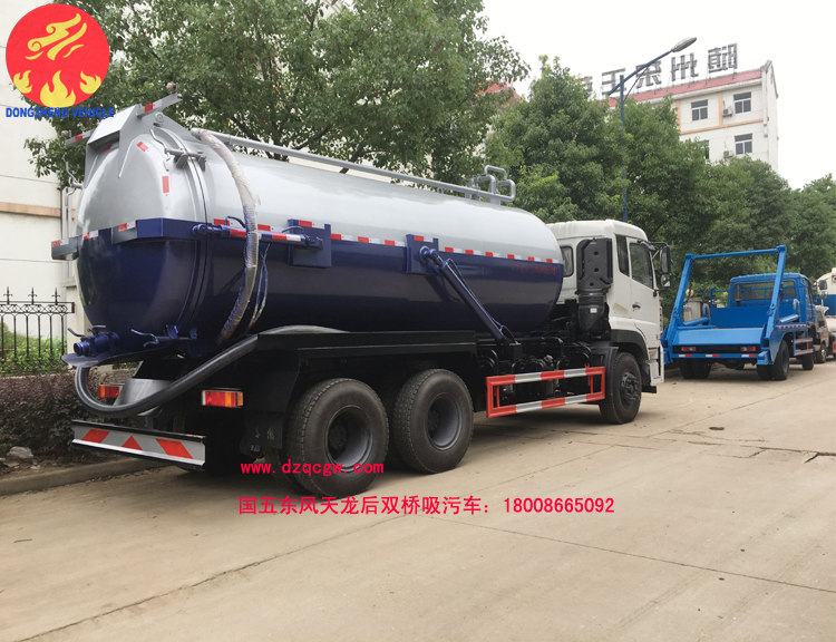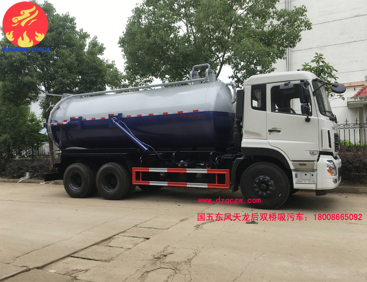 底盤(pán)說(shuō)明:東風(fēng)天龍后雙橋底盤(pán),國(guó)五康明斯發(fā)動(dòng)機(jī),7T前橋,10噸后橋,陜齒9檔變速箱,11.00R20鋼絲胎,帶空調(diào),ABS。該車(chē)用途為吸污,主要裝置為污罐.罐體有效容積:15.48立方米,介質(zhì):液態(tài)污物,罐體外形尺寸(直段長(zhǎng)×直徑)(mm):5600×1950,5300×1950.選用4350+1350mm軸距。 |